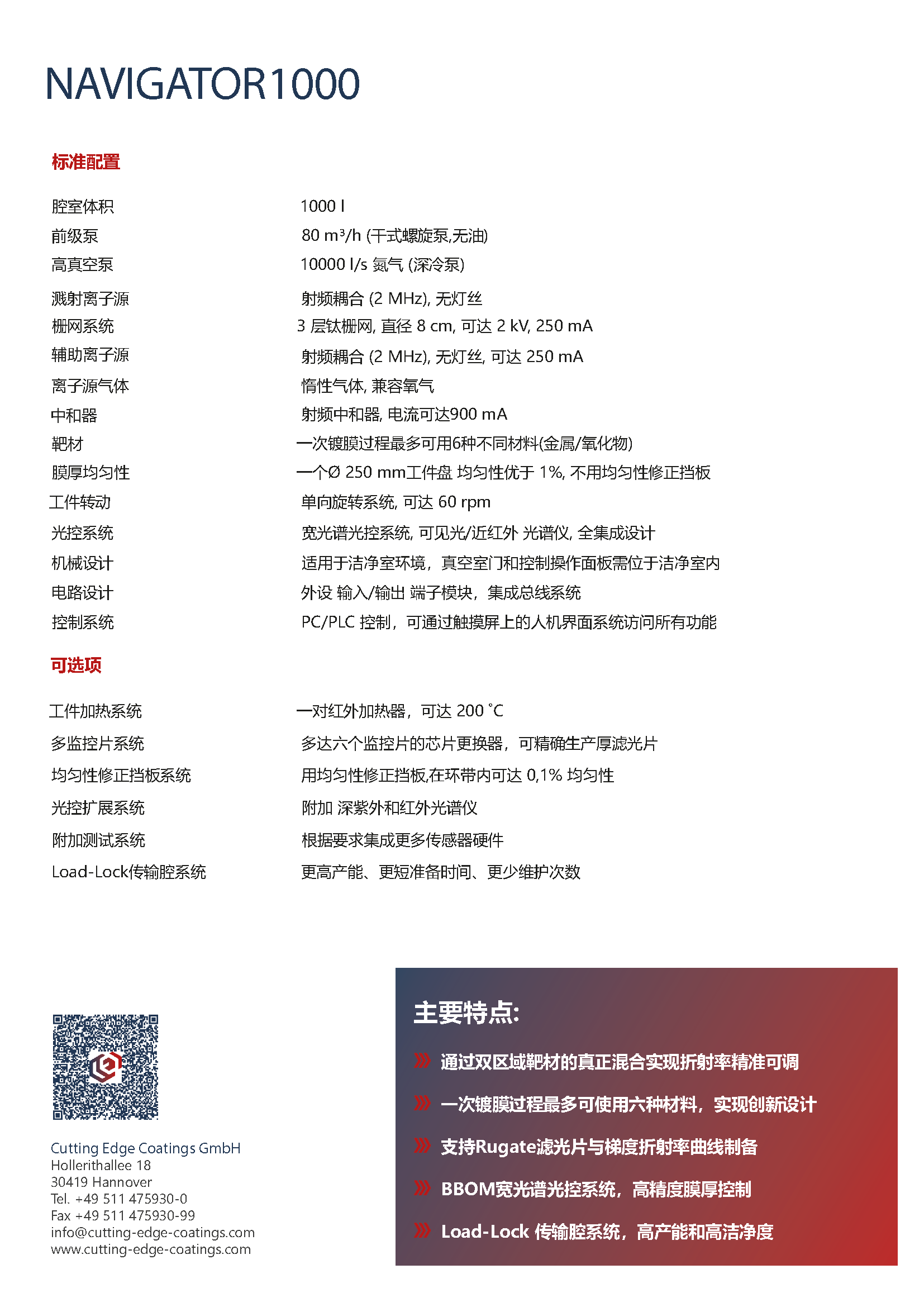 德国CEC NAVIGATOR 1000是一款专为高校及科研机构用户设计的双离子束溅射镀膜设备。该设备具备原子级精度控制能力,支持共溅射及渐变折射率镀膜技术,为前沿科学研究提供强有力的技术支持。